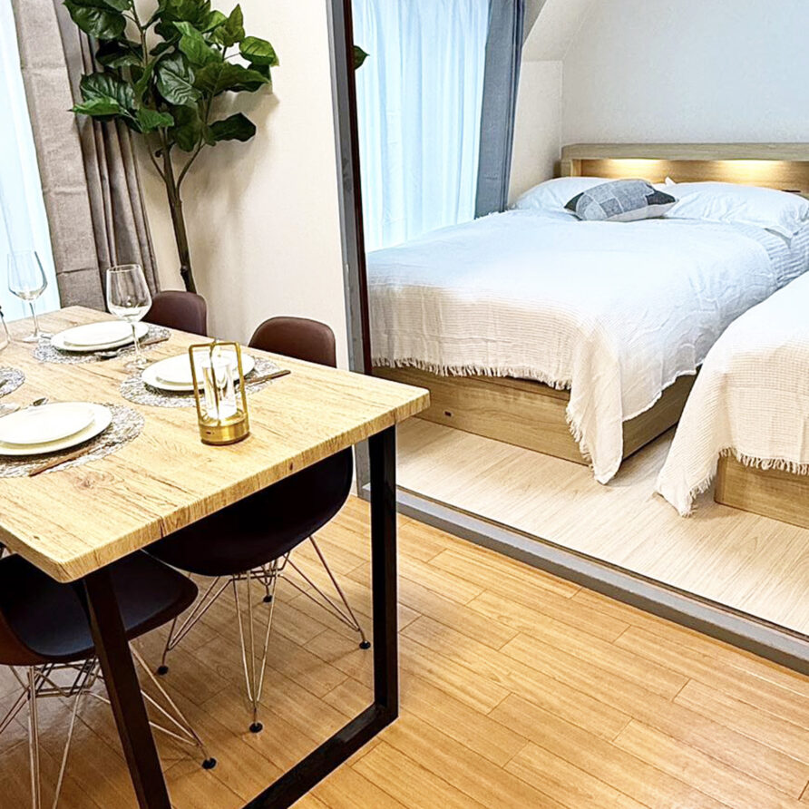 - Amenities: Air conditioner, Body wash, Clothes hangers, Cookware, Detergent, Electric kettle, Fan, Free WiFi, Hair dryer, Hot water kettle, IH stove, Microwave, Projector, Refrigerator, Rice cooker, Shampoo, Slippers, Smart toilet, Towels, Vacuum cleaner