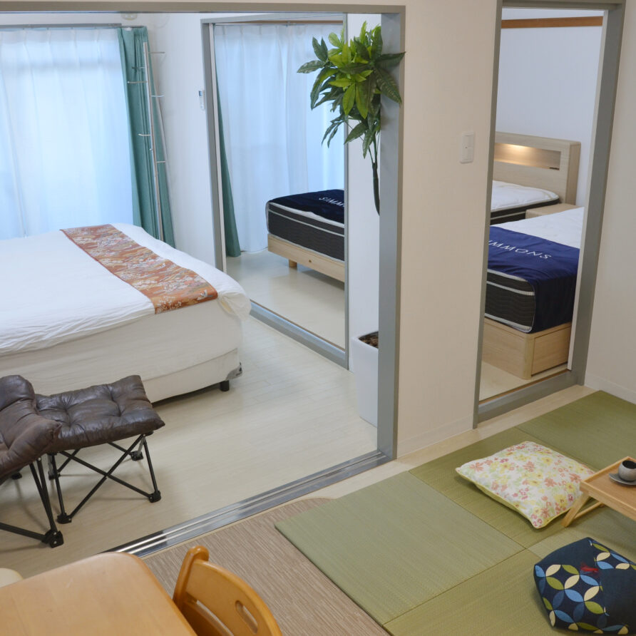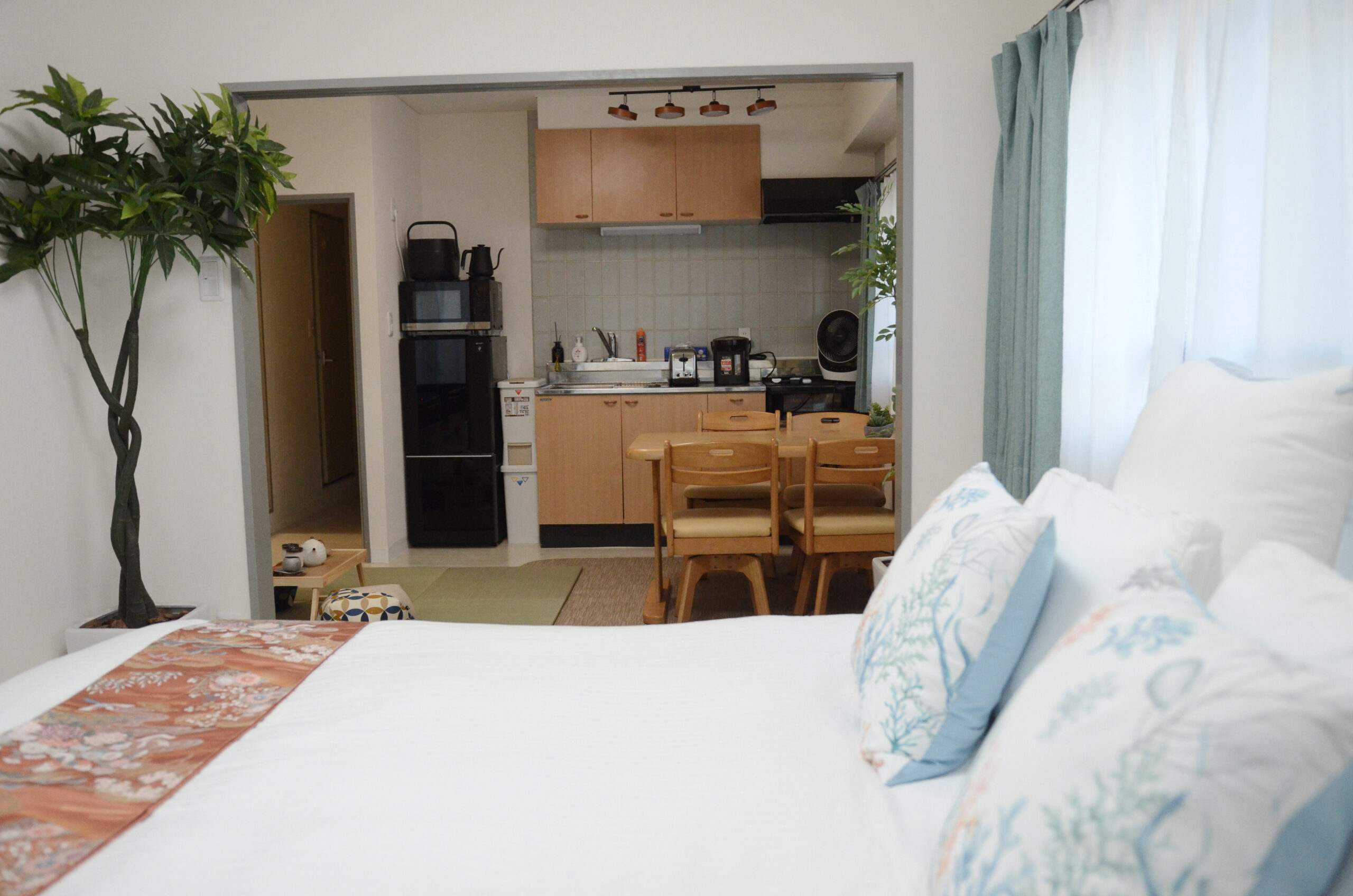 - Amenities: Air conditioner, Body wash, Clothes hangers, Cookware, Detergent, Electric kettle, Fan, Free WiFi, Hair dryer, Hot water kettle, IH stove, Microwave, Projector, Refrigerator, Rice cooker, Shampoo, Slippers, Smart toilet, Towels, Vacuum cleaner