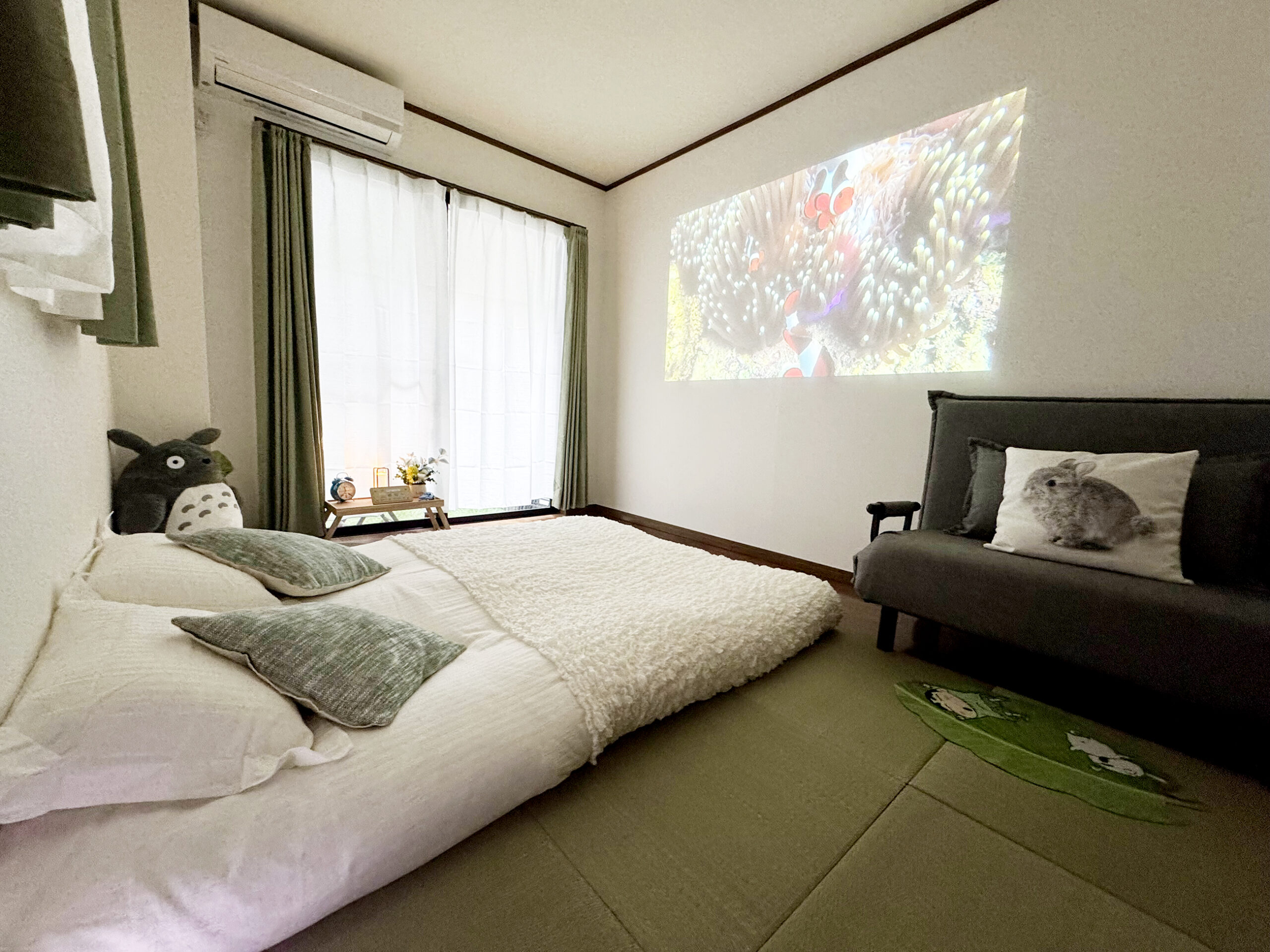- アメニティ: Air conditioner, Body wash, Clothes hangers, Cookware, Detergent, Electric kettle, Fan, Free WiFi, Hair dryer, Hot water kettle, IH stove, Microwave, Projector, Refrigerator, Rice cooker, Shampoo, Slippers, Smart toilet, Towels, Vacuum cleaner
